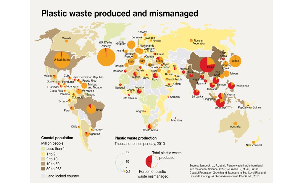 Recycling. This is something we’re taught about in school from a young age, don’t throw food in the recycle bin, paper and cardboard only, blah blah blah (Technology and Environment from back when I was in school). If all kids have learnt this clearly, then we don’t have an issue and we’ve caught the problem from the very start, but there seems to be a huge confusion. The amount of mismanaged waste in the world is a massive problem. Take a look at this diagram.